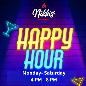 Daily happy hour is a thing at Nikki's Bar and Grill. Join us every day, 4pm-7pm, for $1 off all draft beers, plus appetizer and beer bottle specials.
